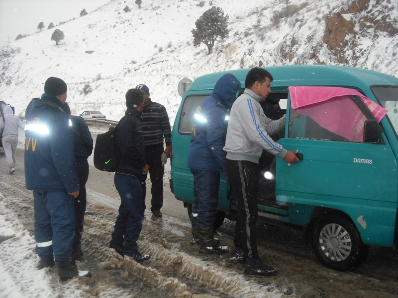 Байкеры помогли застрявшей на дороге в Чимган семье с двумя детьми
