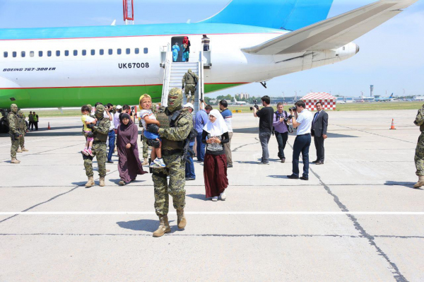 156 узбекистанцев, в основном женщин и детей, доставили специальным рейсом в Ташкент.